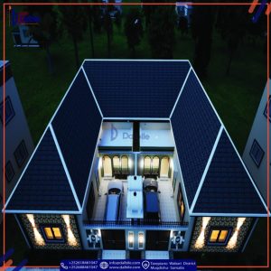 On the ground floor, you’ll find a services room for maintenance, a toilet, and an elevator and staircase for convenient access to the upper floors. The ground floor living area includes a master room, two additional bedrooms, a living room, a kitchen, and a WC, offering comfortable and functional living space.